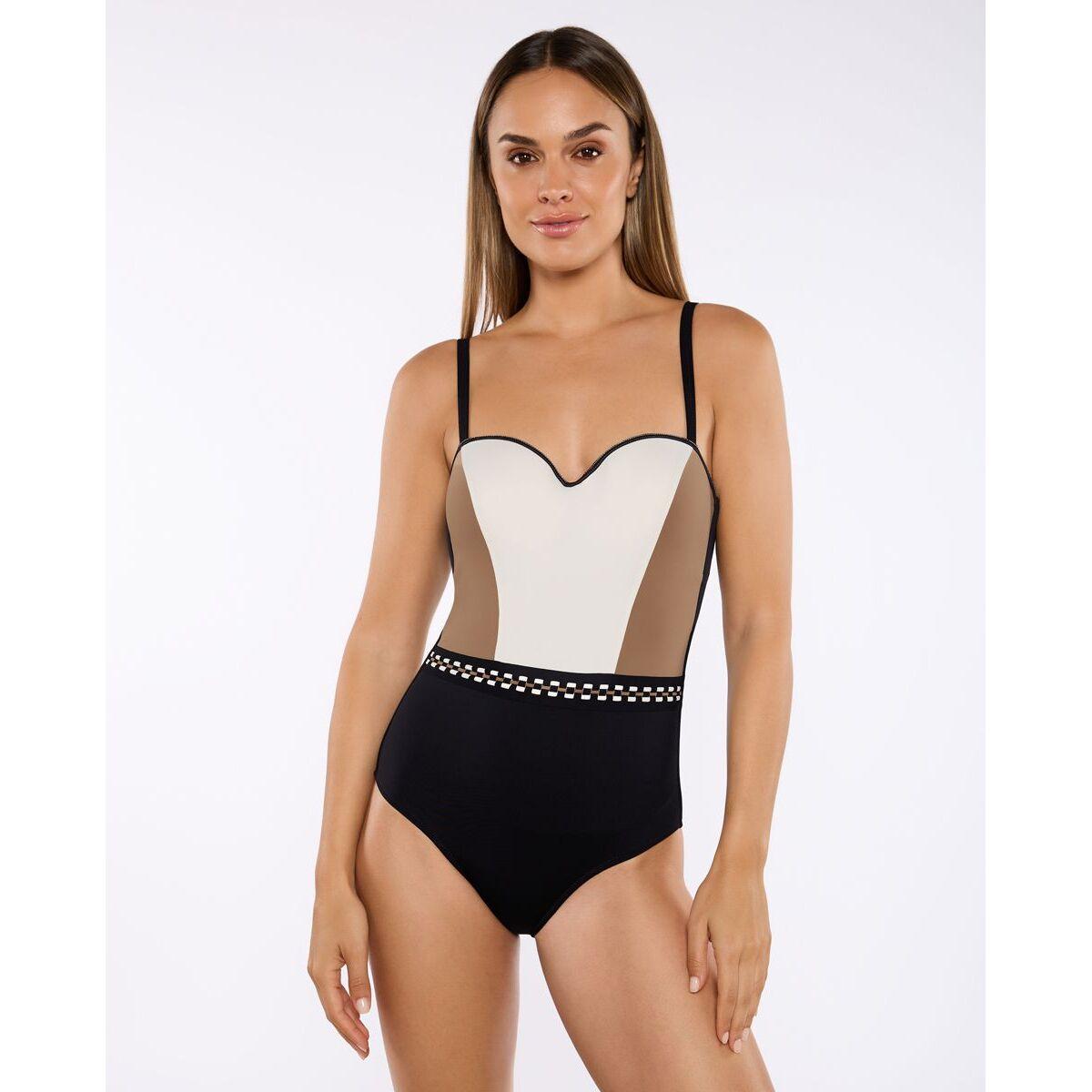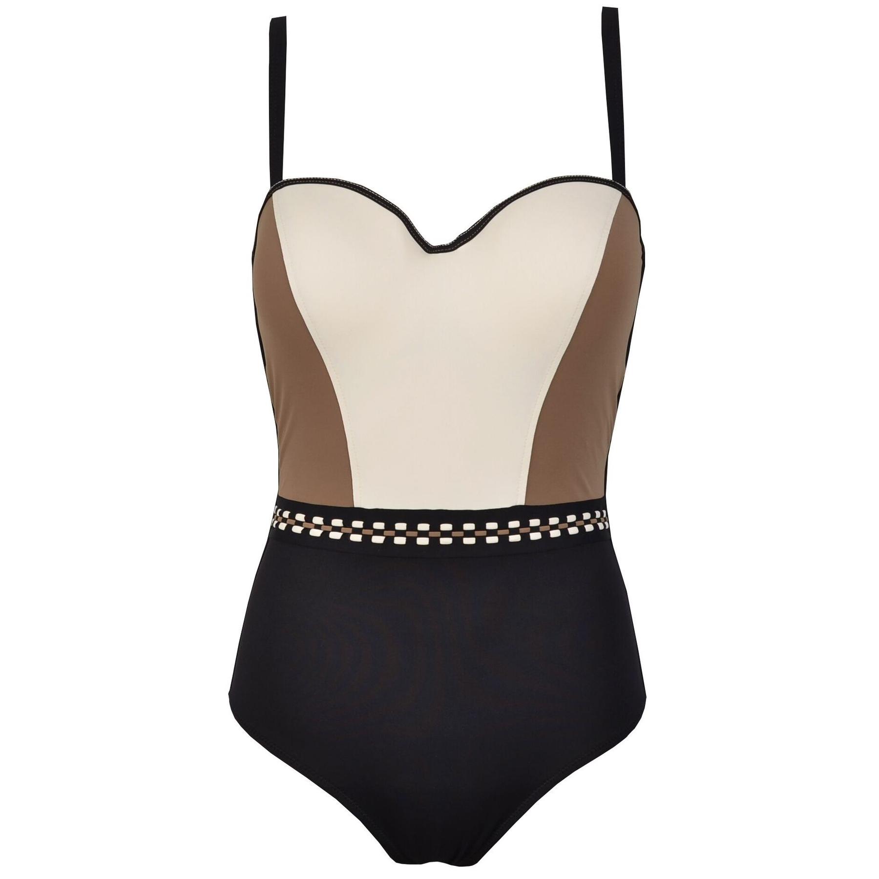 Exiba uma silhueta sofisticada e elegante com este fato de banho em Foam controlado, concebido para lhe oferecer um apoio excepcional e um ajuste perfeito. As suas alças ajustáveis permitem personalizar o conforto, enquanto as tiras nas costas proporcionam um suporte adicional, garantindo uma experiência de uso segura e confortável. O design liso em tons de preto, creme e castanho cria uma combinação harmoniosa, enquanto o detalhe manual em creme e castanho traz um toque único de distinção e elegância. Ideal para desfrutar dos seus momentos de banho com estilo, este fato de banho é a escolha perfeita para quem procura uma vestimenta refinada e confortável, unindo o melhor do design e da funcionalidade.